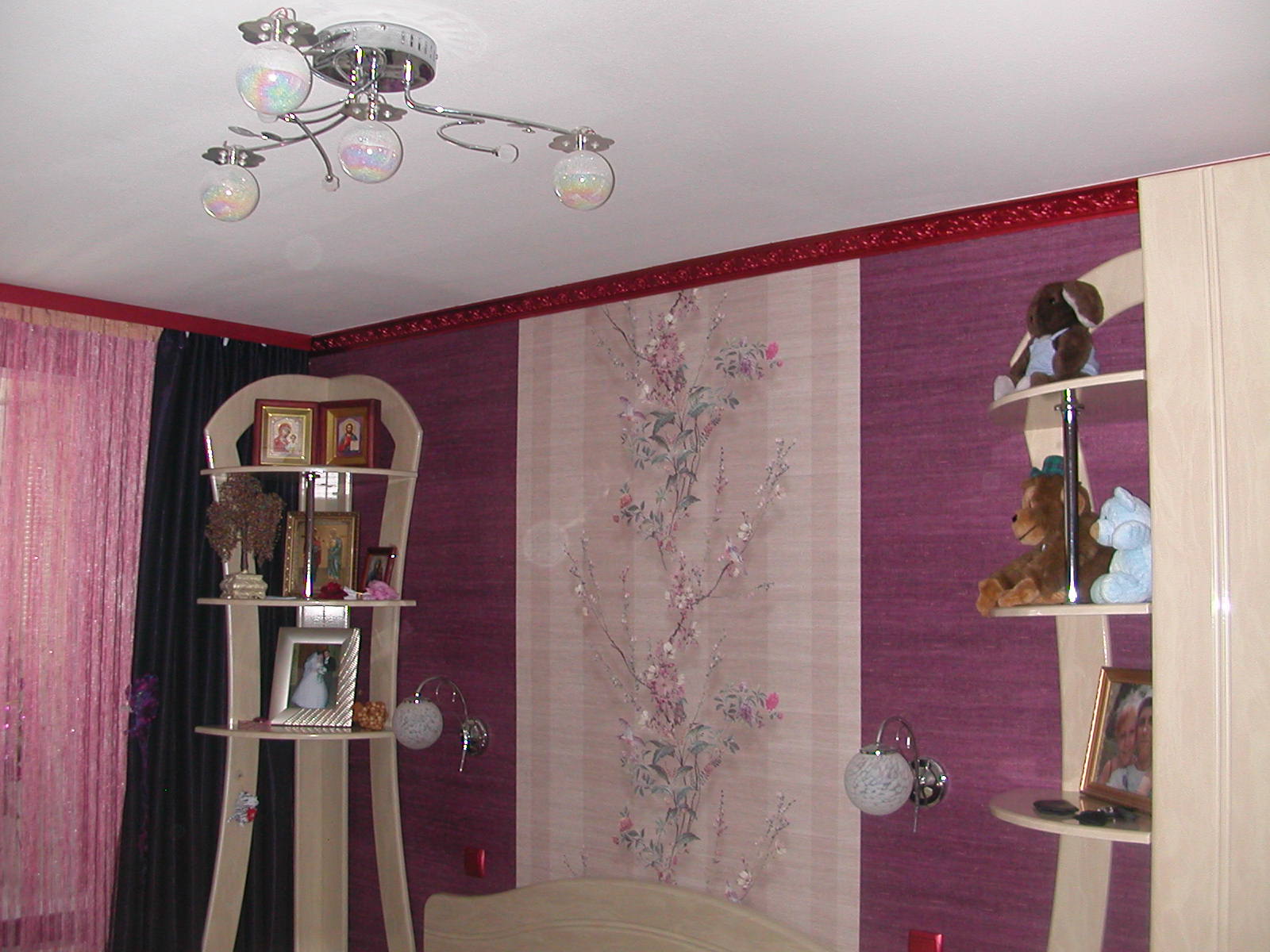 Зонирование комнаты. Иногда в одном помещении приходится совмещать функции сразу нескольких комнат. В этом случае на помощь придут обои разных узоров или оттенков. В таких помещениях можно применить довольно смелые и радикальные сочетания, все зависит от того, насколько сильно вы хотите отделить ту или иную зону, используются ли статические перегородки или только приемы визуального разделения с помощью цвета и света. К примеру, можно поделить комнату детей на две части обоями голубого и розового цвета и использовать статическую перегородку. Или же совместить однотонные обои на кухне и обои с узором в зоне обеденного стола.