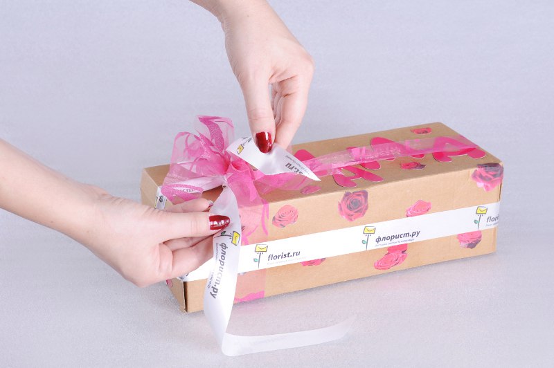 Можно оставить коробку как есть или обклеить её в середине бумагой другого цвета и украсить бантиком.