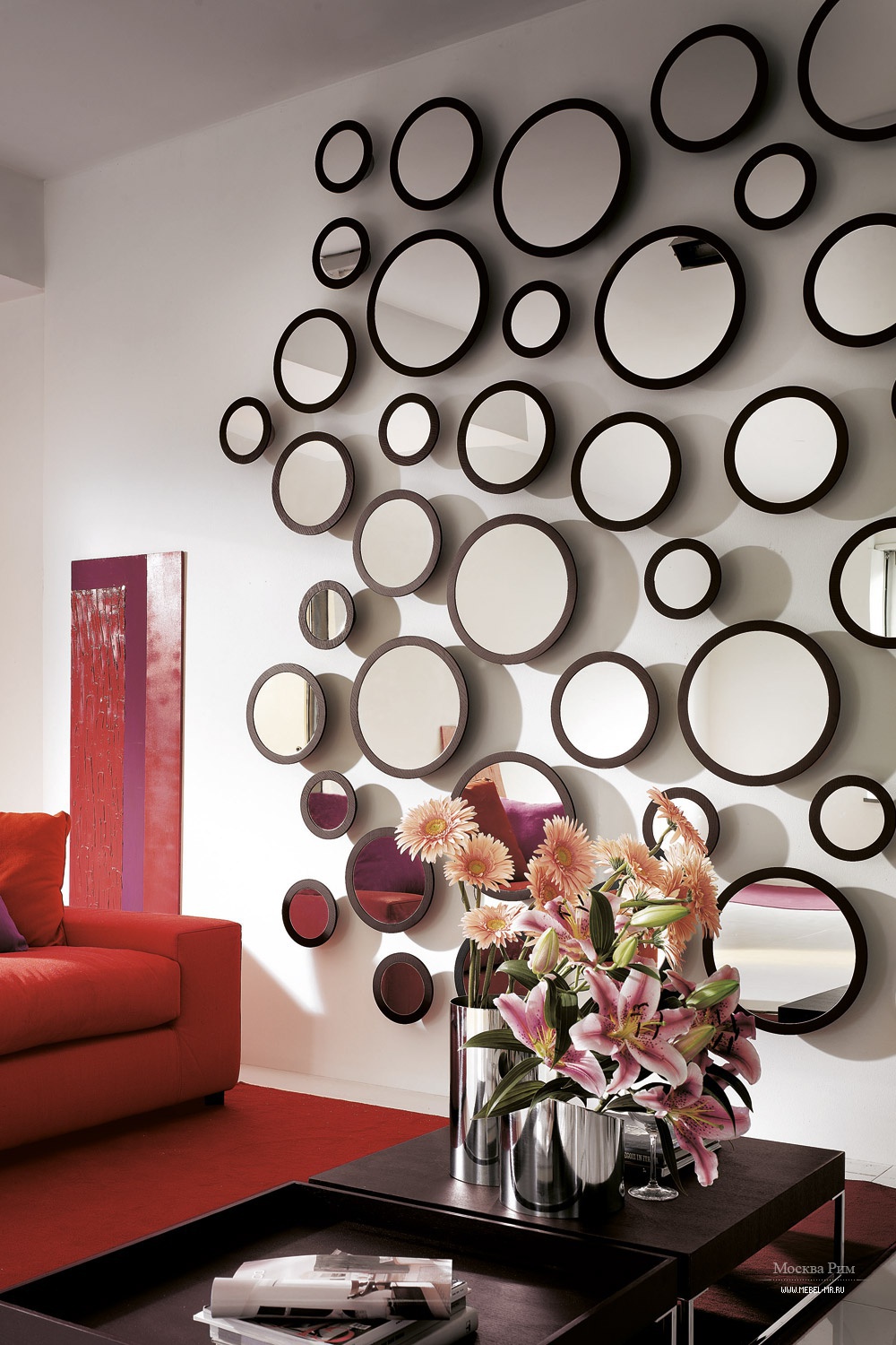 Не знаете, как можно украсить стену своими руками просто и необычно ?Обратите свое внимание на зеркала, они могут придать интерьеру особую индивидуальность и неповторимость. Дизайнеры зачастую используют прием многократного повторения, который позволяет сделать из зеркала оригинальный арт-объект своими руками. Другая возможность сделать в качестве декора зеркальные украшения – использовать зеркала, доставшиеся по наследству и несущие незримую печать старины. Свободная стена спальной или ванной заметно преобразится от такого соседства.