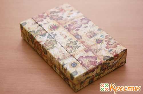 ΠΠ»Ρ ΡΠΎΠ³ΠΎ, ΡΡΠΎΠ±Ρ ΠΏΡΠ°Π²ΠΈΠ»ΡΠ½ΠΎ ΡΠΏΠ°ΠΊΠΎΠ²Π°ΡΡ ΠΊΠΎΡΠΎΠ±ΠΊΡ Π² ΠΏΠΎΠ΄Π°ΡΠΎΡΠ½ΡΡ Π±ΡΠΌΠ°Π³Ρ, Π½Π°Π΄ΠΎ Π±ΡΠΌΠ°Π³ΠΎΠΉ ΠΏΠΎΠ»Π½ΠΎΡΡΡΡ ΠΎΠ±ΠΎΠ³Π½ΡΡΡ ΠΊΠΎΡΠΎΠ±ΠΊΡ. ΠΠ°ΠΏΠ°Ρ Π±ΡΠΌΠ°Π³ΠΈ ΠΏΡΠΈ ΡΡΠΎΠΌ Π΄ΠΎΠ»ΠΆΠ΅Π½ Π±ΡΡΡ 4-5 ΡΠΌ. ΠΡΠΎΠ΄ΠΎΠ»ΡΠ½ΡΠΉ ΡΡΠ΅Π· Π±ΡΠΌΠ°Π³ΠΈ ΡΠ°ΡΠΏΠΎΠ»Π°Π³Π°Π΅ΡΡΡ Π½Π° Π±ΠΎΠΊΡ, Π½Π° 4-5 ΡΠΌ ΠΎΡ ΠΊΡΠ°Ρ ΠΊΠΎΡΠΎΠ±ΠΊΠΈ. ΠΠΏΠΎΡΠ»Π΅Π΄ΡΡΠ²ΠΈΠΈ ΡΡΠΎ Π±ΡΠ΄Π΅Ρ Π½ΠΈΠ· Π½Π°ΡΠ΅ΠΉ ΡΠΏΠ°ΠΊΠΎΠ²ΠΊΠΈ.