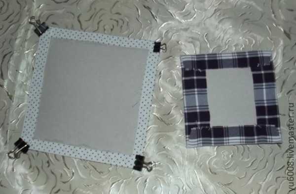Картон обтянула тканью и приклеила, углы зашила.