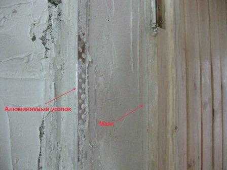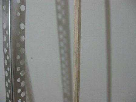 3. Клеим направляющий уголок и маяк (маяк я использовал деревянный).