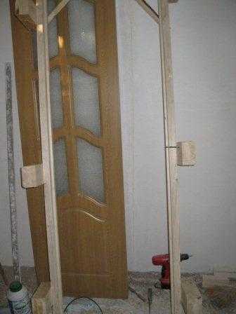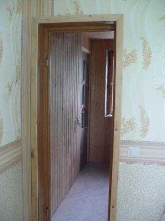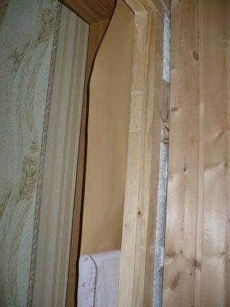 1. Устанавливаем дверь, и, при необходимости, в щелевые проёмы приклеиваем пенопласт у дверных откосов.