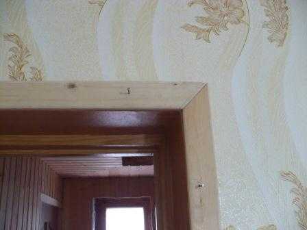 12. Прежде чем обклеивать наличники самоклейкой, грунтуем планки и предварительно крепим их на свое место.