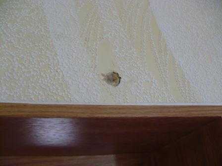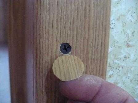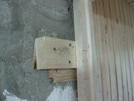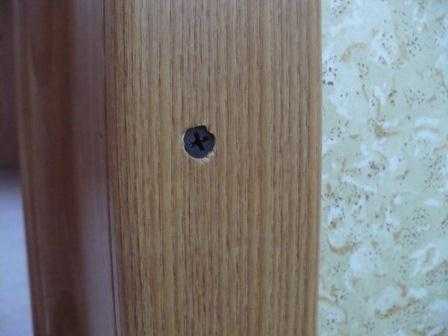 13. Наличники можно закрепить саморезами, предварительно наметив и просверлив отверстие. В отверстие в стене я вбил деревянный чёп.
