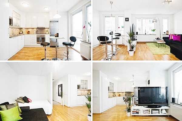 Белый цвет является идеальным для оформления небольших квартир. Но это не значит, что все маленькие помещения должны быть идеально белыми. Для окраски комнаты можно использовать различные оттенки розового, голубого, зеленого, желтого и даже фиолетового. Каждая зона должна быть выделена отдельным цветом, иметь свой неповторимый стиль.
