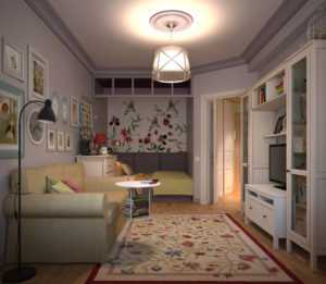 - детская — если планируется проживание с одним ребенком либо несколькими детьми, то при помощи зонирования однушка делится на две маленькие комнаты, в одной из которых можно обустроить детскую. Сделать это можно при помощи большого книжного либо вещевого шкафа, устанавливатьспециальнуюперегородкунежелательно, поскольку это отнимет лишние сантиметры свободного пространства, может не вписаться в интерьер квартиры, потребует составить специальный проект, замедлит ремонт. Для детской потребуется до 10 кв м;