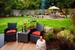 Очень уютный сад с невероятно яркой зоной отдыха для большой компании