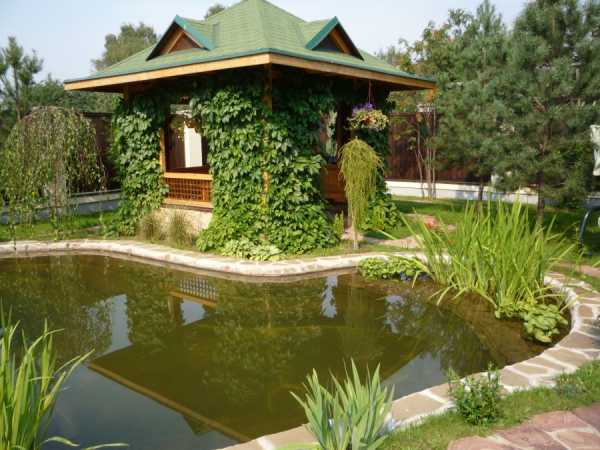 Я бы посоветовал создать пруд. Это будет красивое обустройство дачного участка, декорированное водными растениями. Его не трудно выполнить своими руками. Для начала следует выкопать яму, и дать время почве осесть. Затем распланировать разводку воды от водопровода. Это дело не сложное. Дно пруда выложить специальной плёнкой, так, чтобы она покрывала и стенки, но не внатяжку. Плёнку советую брать чёрного цвета, так будет создаваться иллюзия глубины. За края водоёма её надо вывести на полметра, и присыпать песком, а затем обложить декоративными валунами. Можно поступить и проще – купить пластиковую ванну, или любую другую форму, и вкопать её на участке в уровень с землёй. Обложить декоративно камнями, отсыпать разноцветной галькой, а вдоль берега высадить водолюбивые растения и газонные травы.
