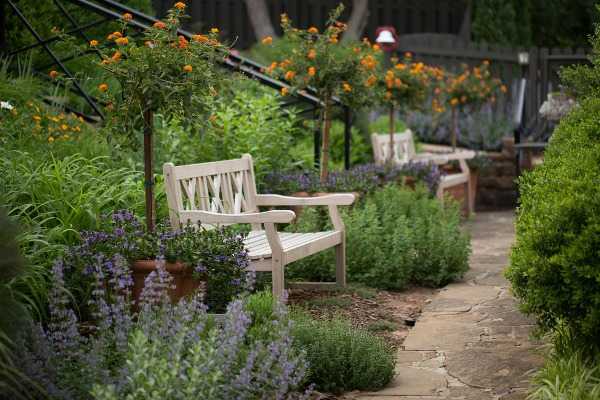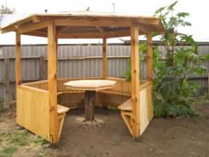Если у вас есть возможность, обязательно предусмотрите наличие беседки или скамейки с небольшой оградкой около нее. Там вы можете посадить любые вьющиеся растения, которые оплетут беседку или оградку и создадут приятную обстановку вокруг места отдыха.