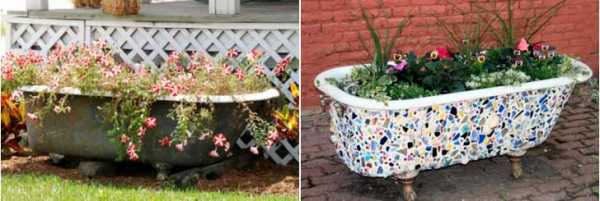 Любой предмет, который вот уже несколько лет просто так стоит в сторонке на вашем участке, в умелых руках может превратиться в эксклюзивное украшение палисадника.