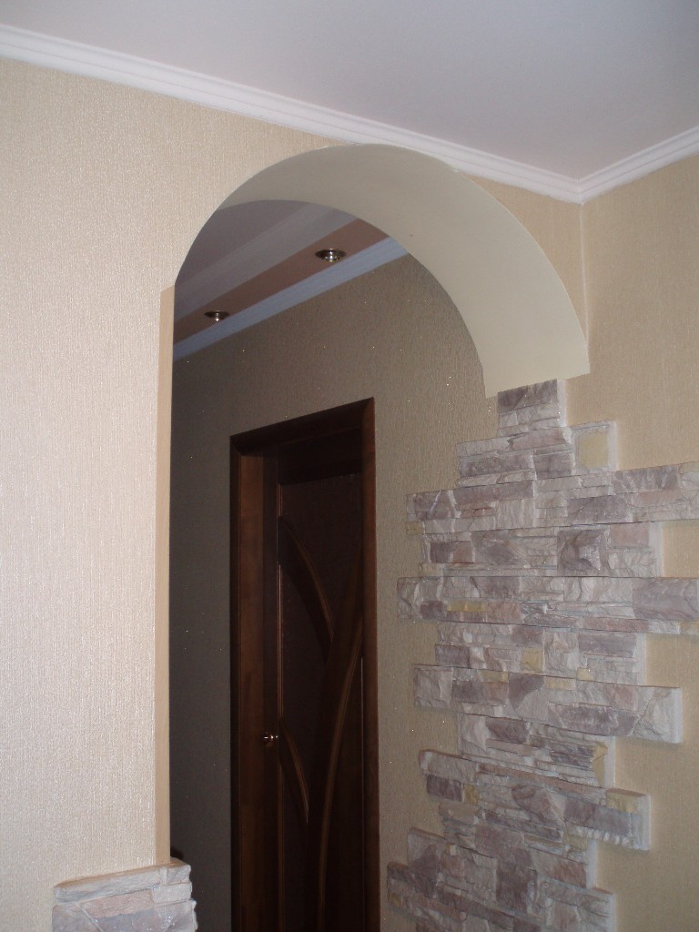 Для этого не обязательно расширять существующий в стене проем, в последние годы активно используется идея создания фальш-арок. В таком случае в прямоугольный пролет устанавливают угловые элементы из полиуретана или гипсокартона со скругленными сторонами, и в результате получается полноценная арка при гораздо меньших затратах средств и труда. Однако такой способ подходит далеко не для всех жилищ: необходимо, чтобы проем обладал достаточной высотой.