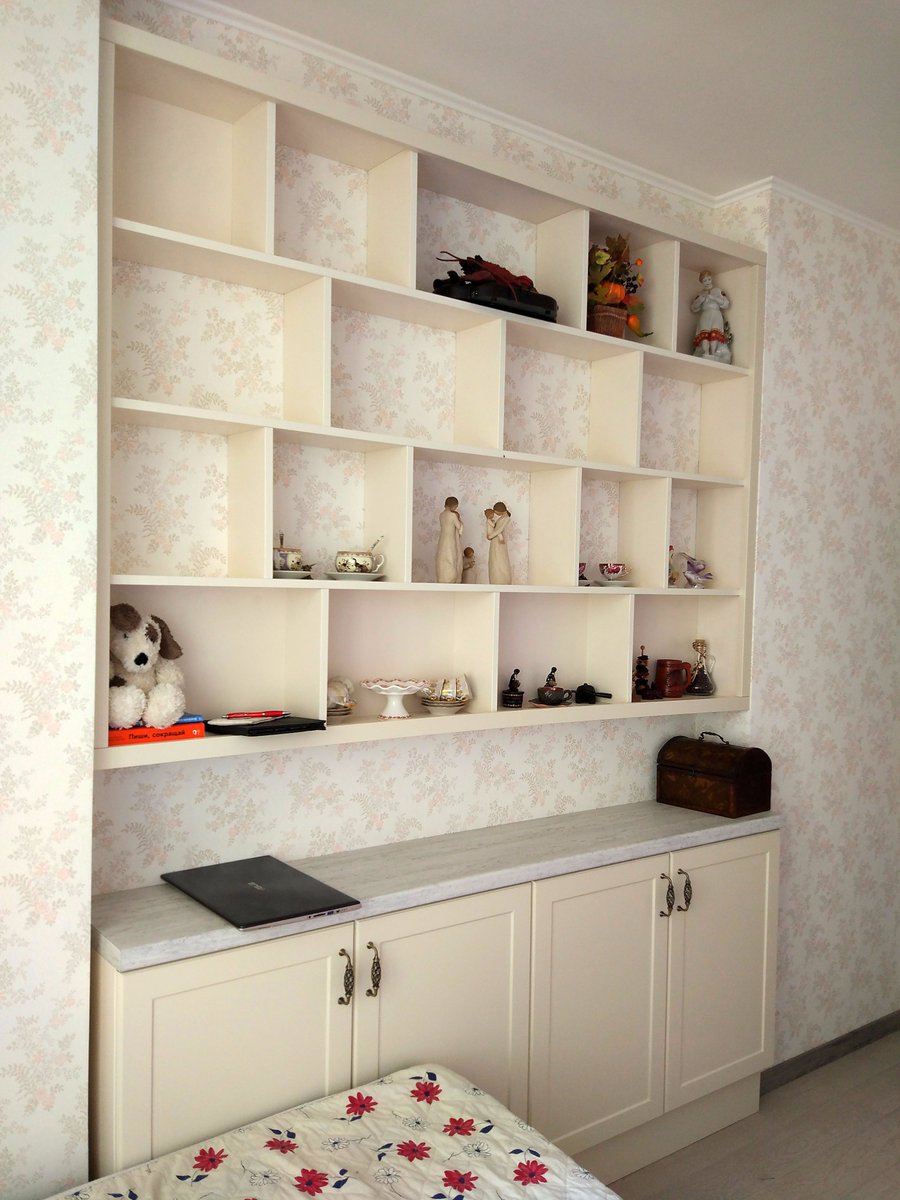 Ниша в стене дает нам дополнительное пространство, например, при толщине стены 25 сантиметров, можно выиграть лишние 20 сантиметров глубины. А если вам недостаточно такой глубины и вы хотите поставить в нишу что-то крупное, можно соорудить выступающую полочку, тогда туда войдет даже видео и аудиоаппаратура.