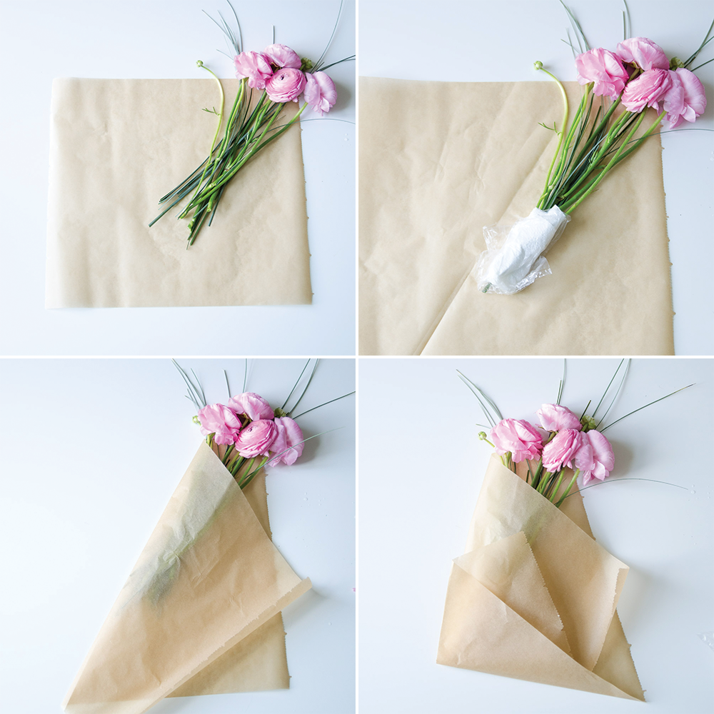 Когда вы закончите добавлять цветы и вам понравится внешний вид вашего букета, обрежьте все стебли коротко и ровно.Нажмите, чтобы твитнутьШаг 7. Это хорошее время, чтобы заручиться помощью друга.