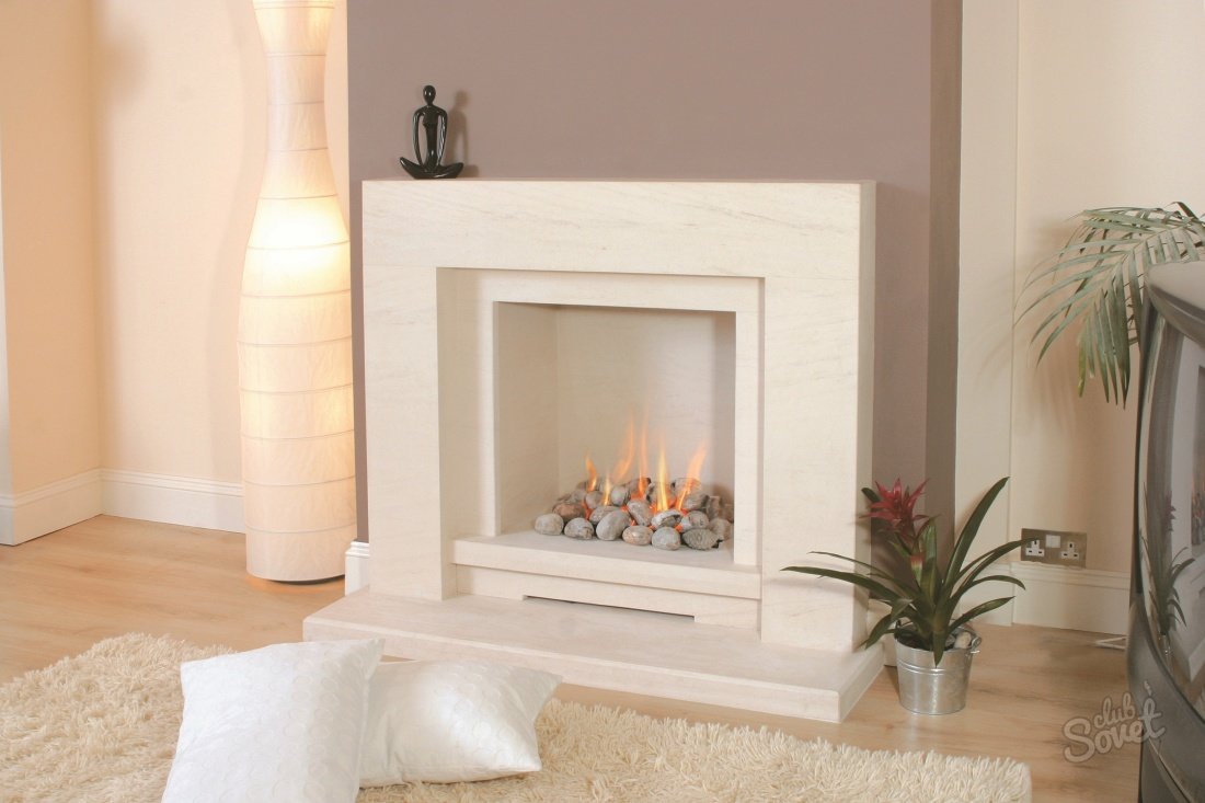 Фальш камин светло бежевого оттенка гармонирует с цветом стен