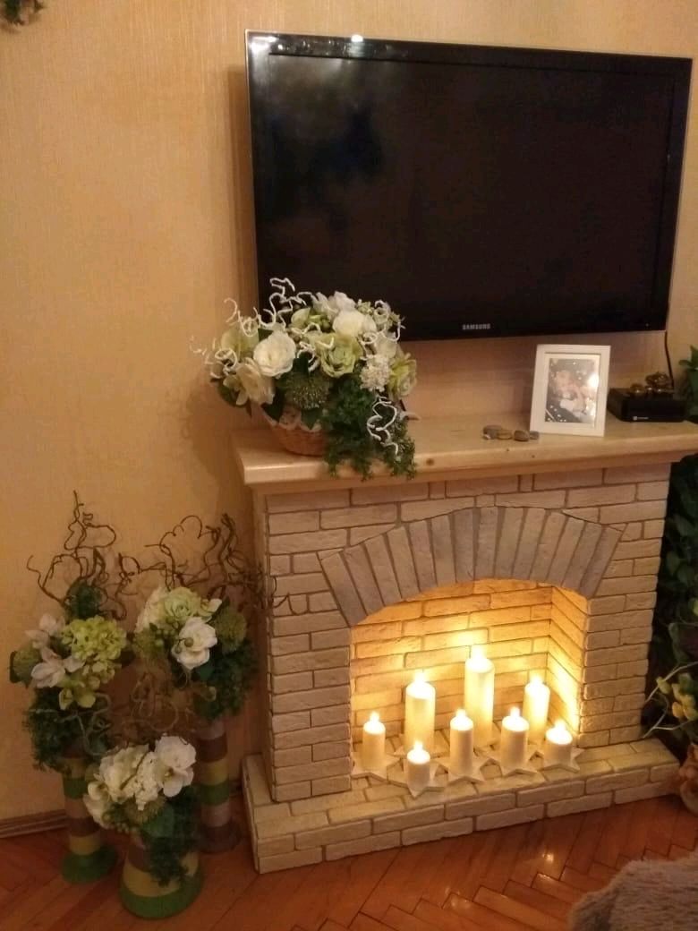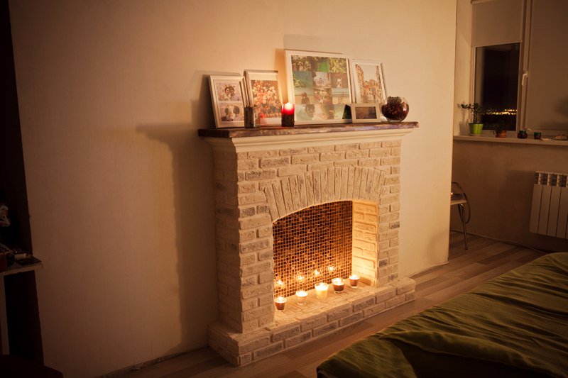 Фальш камин со свечамиДалеко не в каждый фальш камин можно положить дрова, чтобы создать полноценную иллюзию присутствия настоящего очага. Заменить огонь от поленьев можно свечами: пофантазируйте, создайте красивую композицию (ее можно будет регулярно менять, чтобы она не надоедала). Зимой свечи можно сочетать с еловыми ветвями и шишками, летом – с венком из сухоцветов, осенью – с желтой листвой. Такой уголок природы станет беспроигрышным вариантом, он оживит пространство и подарит вам и вашим близким немало приятных моментов.