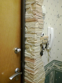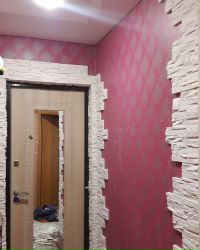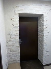 - Если стены в районе косяка двери имеют значительные, трудноустранимые дефекты, декоративный камень отлично их маскирует.