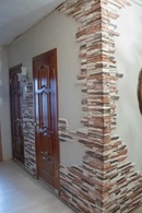 - Простота крепления. Имитация природного материала характеризуется правильной геометрией, малым весом и легко режется, что облегчает подгонку фрагментов при отделке косяков дверей.