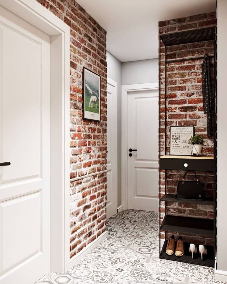 - Прихожая — светлая кладка со световым акцентом увеличит узкую прихожую без естественного освещения.