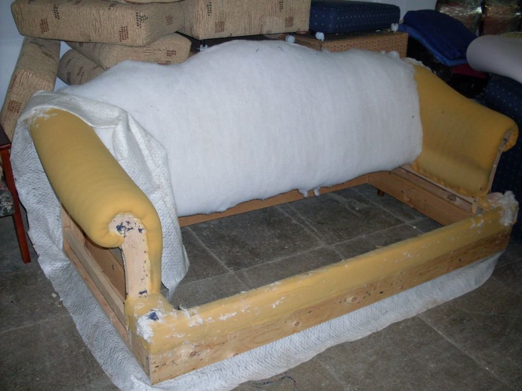 Диваны, в основе которых не пружинные блоки, требуют проклейки каркаса поролоном или синтепоном.