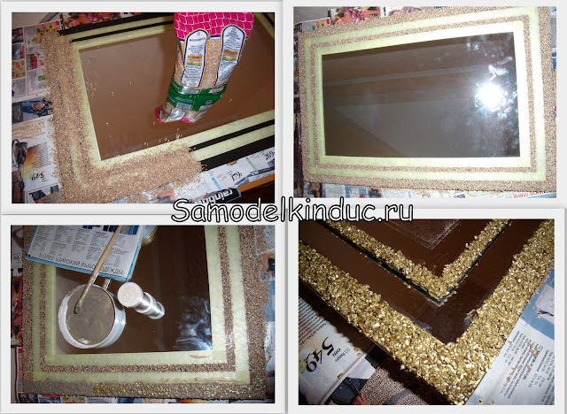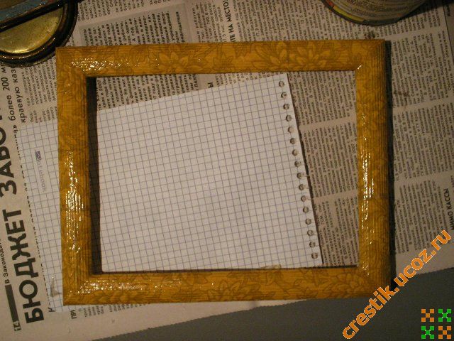 Тампоном нанесите на рамку поверх серого слоя золотую краску.