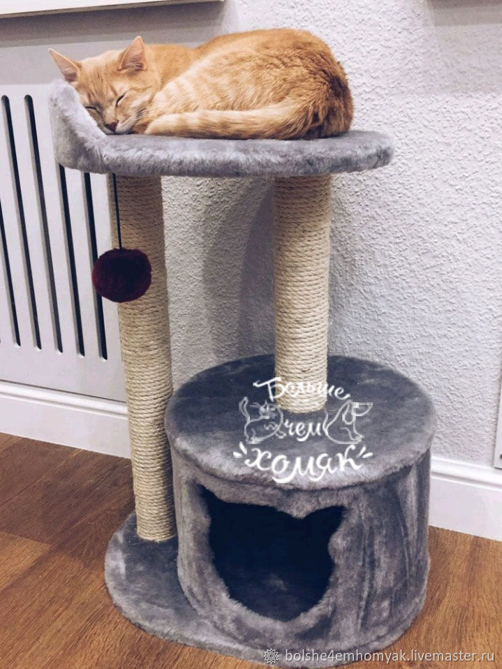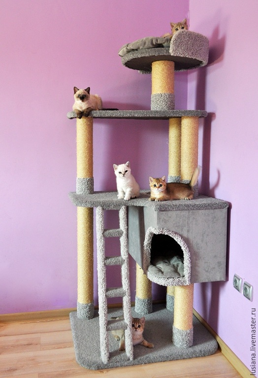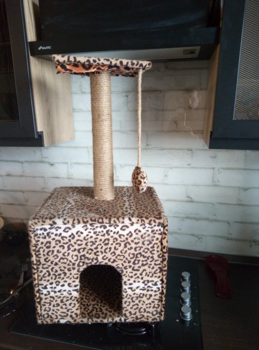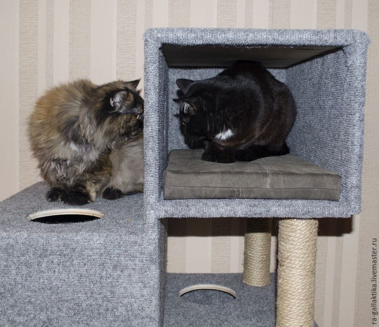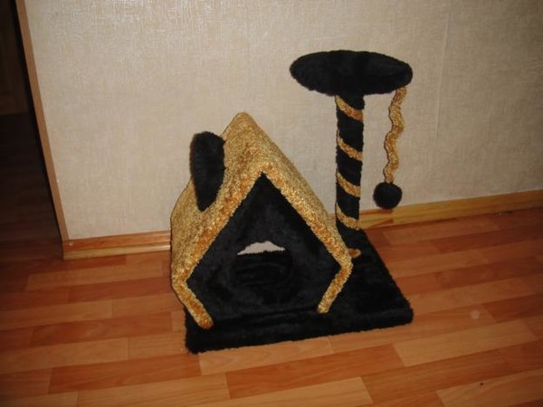 Осталось положить мягкую подстилку внутрь домика и на лежанку, декорируя ее по вашему вкусу и предпочтениям кошки. С новосельем!