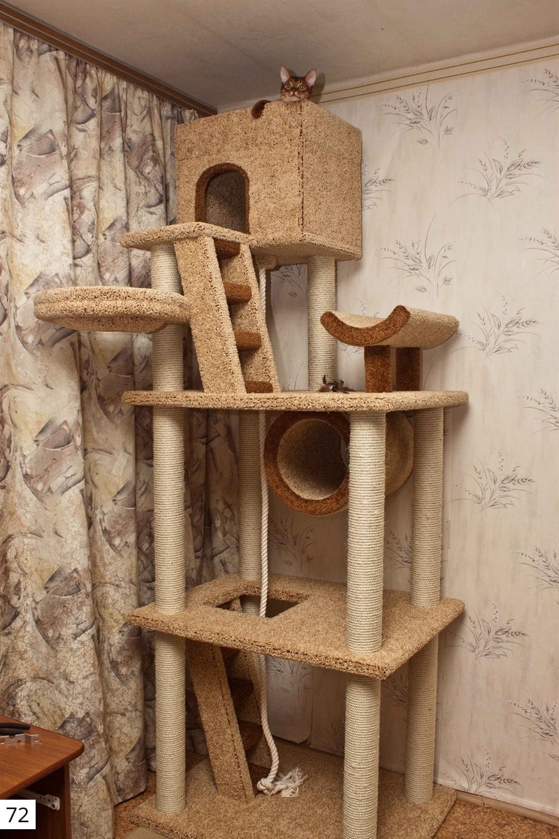 Стоит ли покупать кошкам специальную мебель — вопрос дискуссионный. Но в зоомагазинах сегодня можно найти огромный ее ассортимент: это и разнообразные домики (напольные, подвесные, навесные), и открытые лежанки, и конструкции с возвышенностями, и множество игровых комплексов. При желании можно даже приобрести дизайнерскую мебель, стоящую не дешевле человеческой.