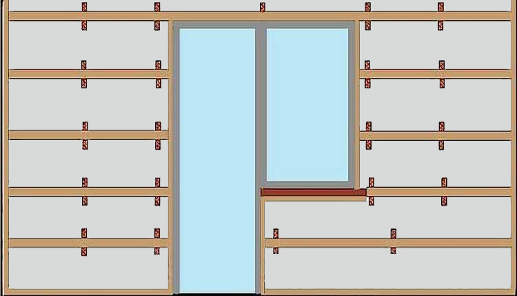 Элементы обрешетки должны располагаться перпендикулярно пластиковым листам. Это означает, что если обрешетка идет горизонтально, панели пойдут вертикально, и наоборот. Расстояние между планками обрешетки должно составлять от 30 до 50 сантиметров, оптимальной все же является первая цифра. Планки предстоит закрепить около оконных проемов, около дверных проемов, а также в начале и конце стенки.