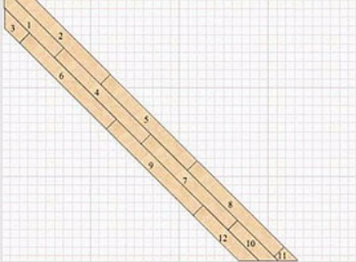 По методике «несимметричной укладки» остаток доски с первого ряда нужно установить в начало второго ряда и так далее