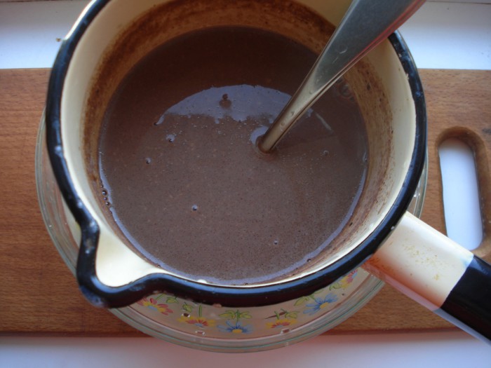 При этом не забываем непрерывно помешивать её. Варим глазурь на небольшом огне, непрерывно помешивая её