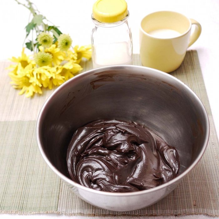 Такая шоколадная заливка готовится без нагревания. Ее получают путем смешивания: