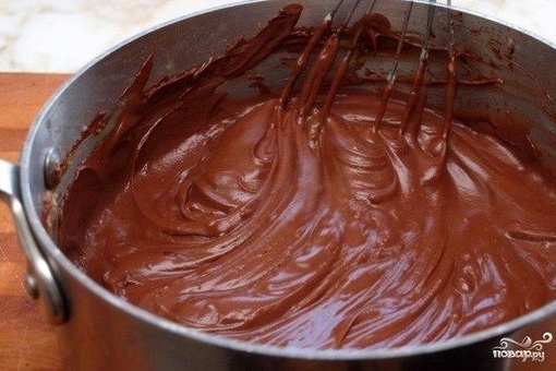 Масса быстро застывает. Чтобы замедлить процесс, сотейник с готовой глазурью помещают в миску с горячей водой.