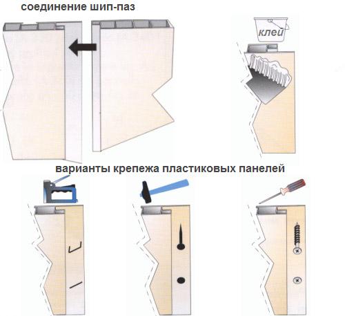 Монтаж пластиковых панелей можно выполнять двумя основными способами – с помощью обрешетки и с помощью «жидких гвоздей»