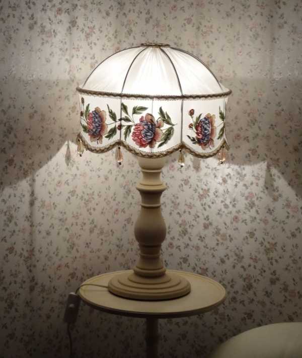 Настольная лампа с таким абажуром прекрасно впишется в девичью спальню в стиле прованс.