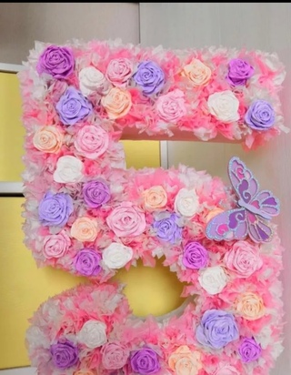Приклеиваем корону к цветам с помощью клея. Красивый, стильный декор в виде цифры готов!