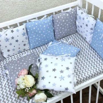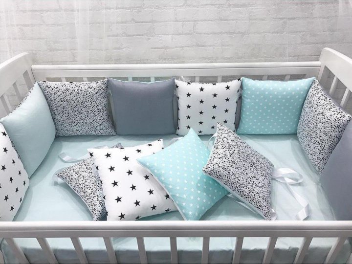. Такие предметы оказываются более функциональными, ведь когда малыш подрастет, их можно будет использовать в качестве обычных интерьерных подушек.СОВЕТ. Выбирая бортики, обратите внимание на крепления: элегантные завязки могут развязываться, малыш может путаться в лентах, так что чем проще и надежнее крепление, тем лучше для младенца. Потайные молнии на чехлах и прочная лента-липучка – оптимальное сочетание для безопасного изделия.