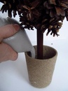 Теперь посадите дерево в горшок. Лучше чашечку с деревом поставить у стены, чтобы дерево о нее опиралось, и тем самым оставалось ровным пока не засохнет гипс.