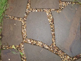 3) Плоские камни помещают на основание из песка, швы расшивают раствором.