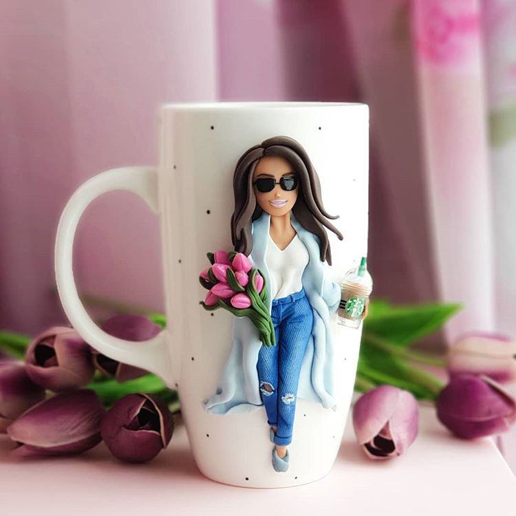 Ольга признаётся, что с детства любила лепить из пластилина. Однажды в магазине она увидела чайную кружку с вылепленной на ней девочкой-принцессой.