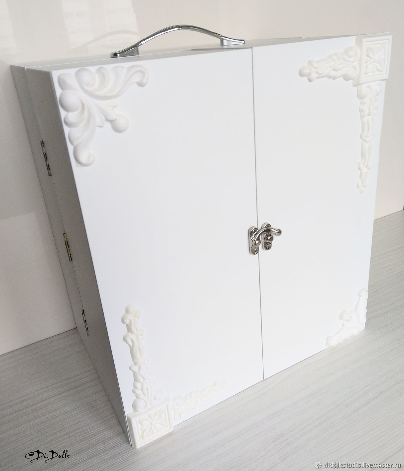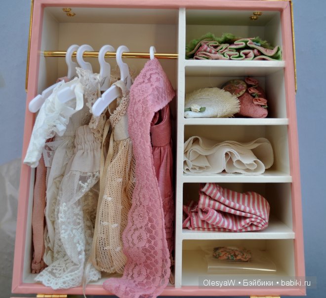Если постараться, то можно сделать сразу несколько отделений. Внутри обычно размещается зеркальце, маленькие ящики, потайные полки, где будет храниться весь кукольный гардероб.