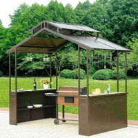 - Печь с барбекю и кирпичной стеной под металлическим навесом.