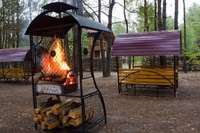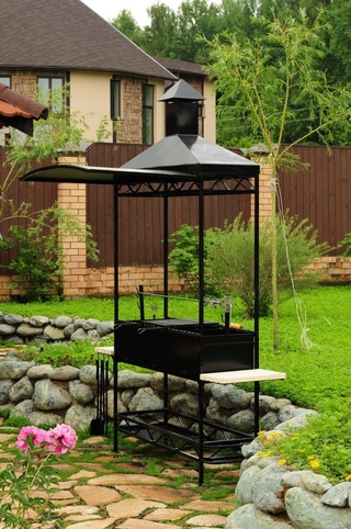 Выстроенный навес может предназначаться не только для стационарной печи. Переносной мангал, изъятый из сарая на время пикника, тоже нуждается в хорошем месте. Приятно, если этим местом станет навес, защищающий от палящего солнца.