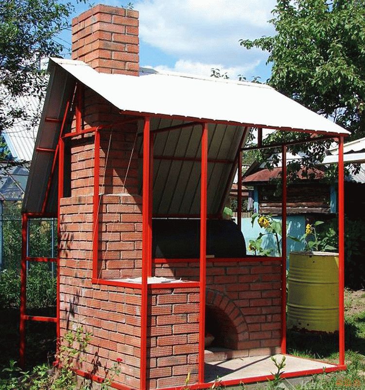 Металл огнестойкий и долговечный, вполне бюджетный, если работы выполнять самостоятельно. Мангалы с навесами могут послужить нескольким поколениям. Но материал имеет и свои недостатки: