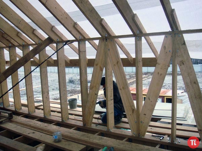 С внутренней стороны стропильного каркаса укладываем пароизоляцию, крепим ее скобами. Затем монтируется слой утеплителя, важно чтобы он плотно прилегал к стропилам, без щелей. На теплоизоляционный слой монтируем обрешетку с шагом 500 мм, которая будет фиксировать утеплитель. Строим мансарду своими руками, монтаж кровельного материала На обрешетку укладываем гидроизоляционный слой, который защитит деревянные элементы от влаги. На гидроизоляцию укладывается кровля. Строительство мансарды своими руками, видео материалы наглядно демонстрируют, как на практике правильно осуществить монтаж стропил.