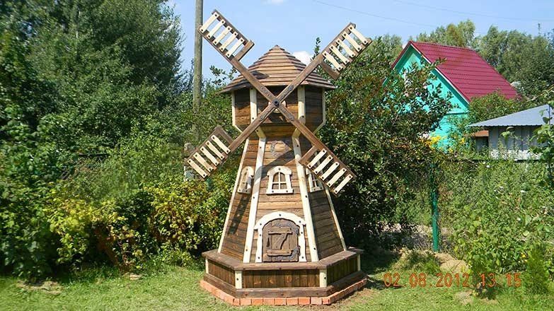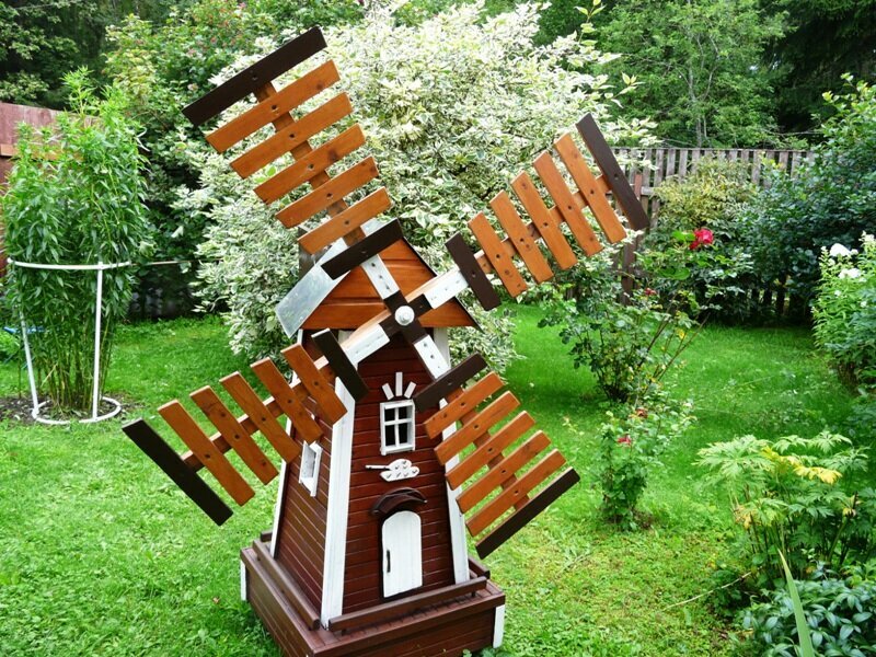 У креативных хозяев мельница декоративная для сада становится стилизованной туалетной комнатой, а люди с инженерными навыками создают действующие модели мельниц.
