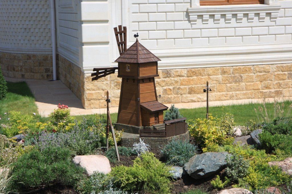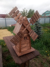 Что же касается небольших конструкций, то и они способны приносить пользу, пусть и не такую ощутимую. Например, если оснастить мельницу выдвижными ящичками, то в них можно сделать цветники с различными сортами растений. А если на участке есть собственный водоем, мельница станет идеальным дополнением к нему и местом для хранения удочек, сачков для чистки воды и прочих инструментов.