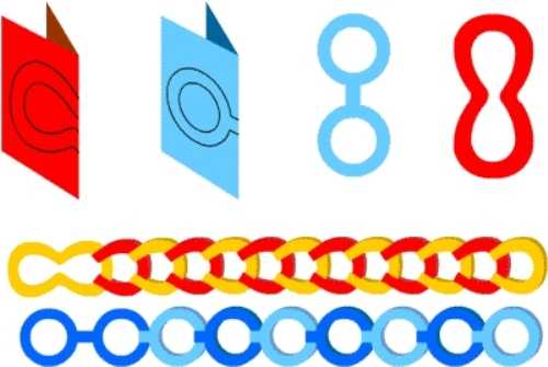 2. Вырежьте формы и начинайте склеивать их, чтобы получилась цепь, продевая одно звено в другое.