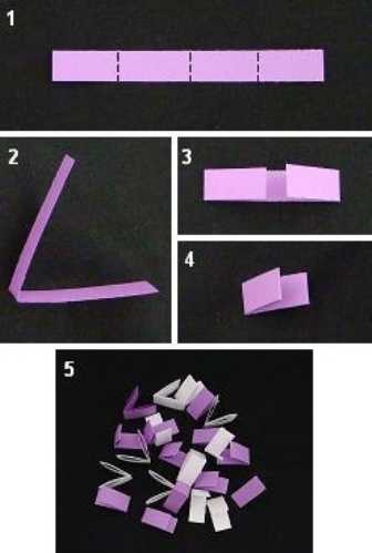4. Приготовьте несколько таких заготовок, чтобы начать собирать гирлянду. На картинке показано, как складывать заготовки между собой.