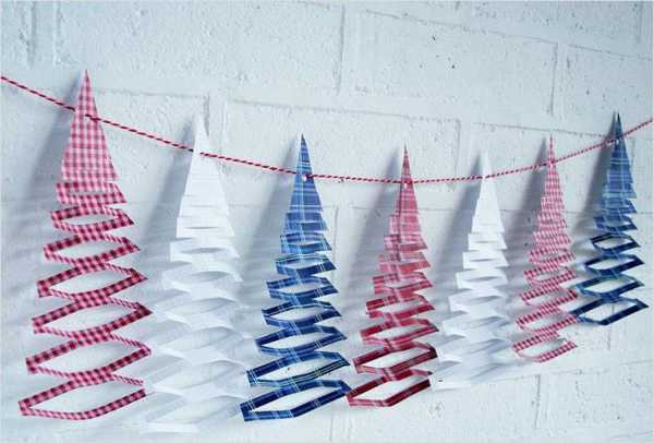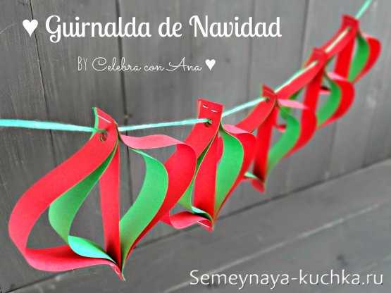 Этот способ изготовления гирлянды один из самых популярных. Это не только потому, что он довольно прост, но и потому, что он позволяет сделать красивое бумажное украшения для дома, и в частности для елки.