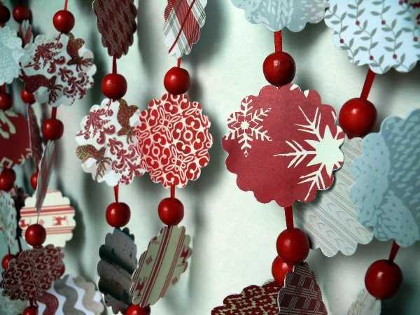 3. Гирлянды из снежинок. Нежные кружевные украшения из обычной бумаги – это просто! Воспользуйтесь шаблонами или сделайте свой собственный дизайн.
